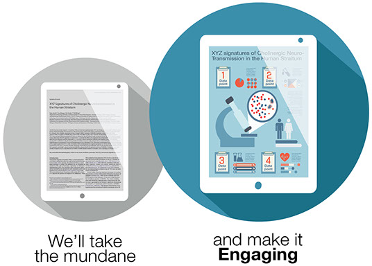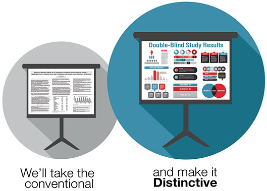Content can be made available in many formats, including print, posters, slides, web pieces, exhibition booths, and more.